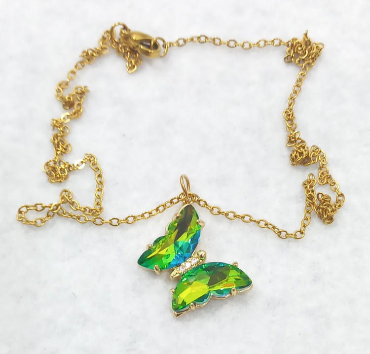 گردنبند دخترانه کریستالی طرح پروانه زنجیر استیل پلاک فانتزی