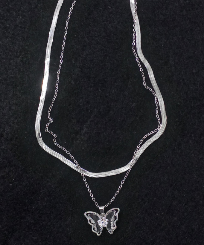گردنبند دولاین دخترانه طرح پروانه استیل